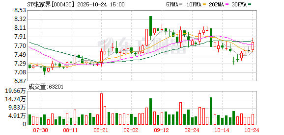 截至10月24日A股收盘,张家界报7.78元/股,涨2.5%。